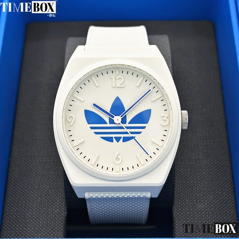 - Циферблат: Бял, със сини стрелки и лого Adidas Trefoil за оптимален контраст.