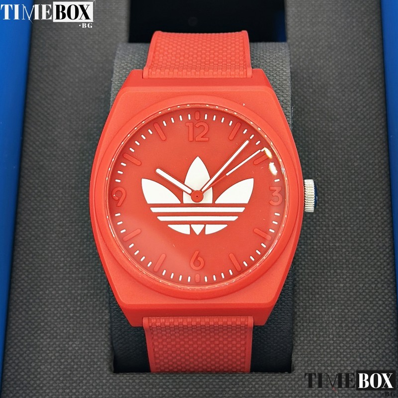 - Циферблат: Червен, с бели стрелки и бяло лого Adidas Trefoil за отлична видимост.