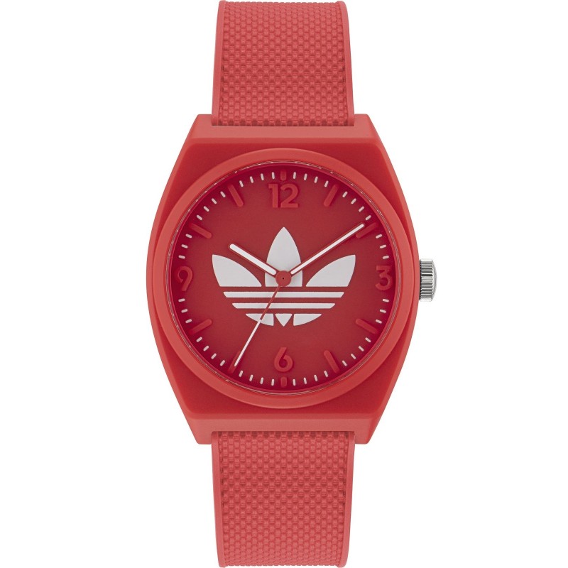Вдъхновен от класическото спортно наследство на марката, часовникът Adidas AOST23051 от колекцията PROJECT TWO е смел израз на стил и отговорност. Наситеният червен цвят отдава почит на емблематичните за Adidas спортни екипи и добавя автентичен ретро акцент към всяка визия. Моделът е изработен с грижа към природата, като корпусът му е от иновативна био-базирана смола. Минималистичният циферблат с контрастни бели стрелки и логото Trefoil е изчистен и лесен за разчитане, а меката силиконова каишка осигурява несравним комфорт през целия ден.