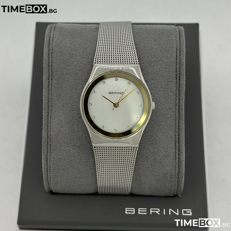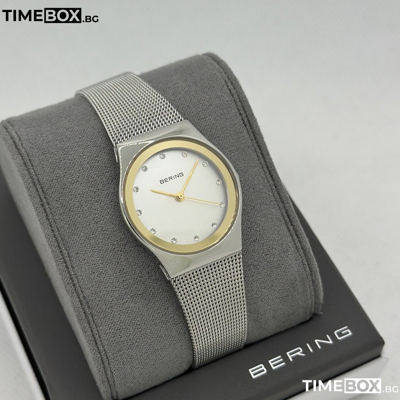 Моделът Bering Classic 12927-010 е олицетворение на датската естетика, която съчетава изчистени линии с изтънчени детайли. Този дамски часовник се отличава със своя елегантен "биколор" дизайн, в който сребристите тонове на благородната стомана се преплитат със златисти акценти, придаващи усещане за висок клас и топлина. Циферблатът е украсен с нежни кристали на мястото на цифрите, които дискретно улавят светлината при всяко движение.