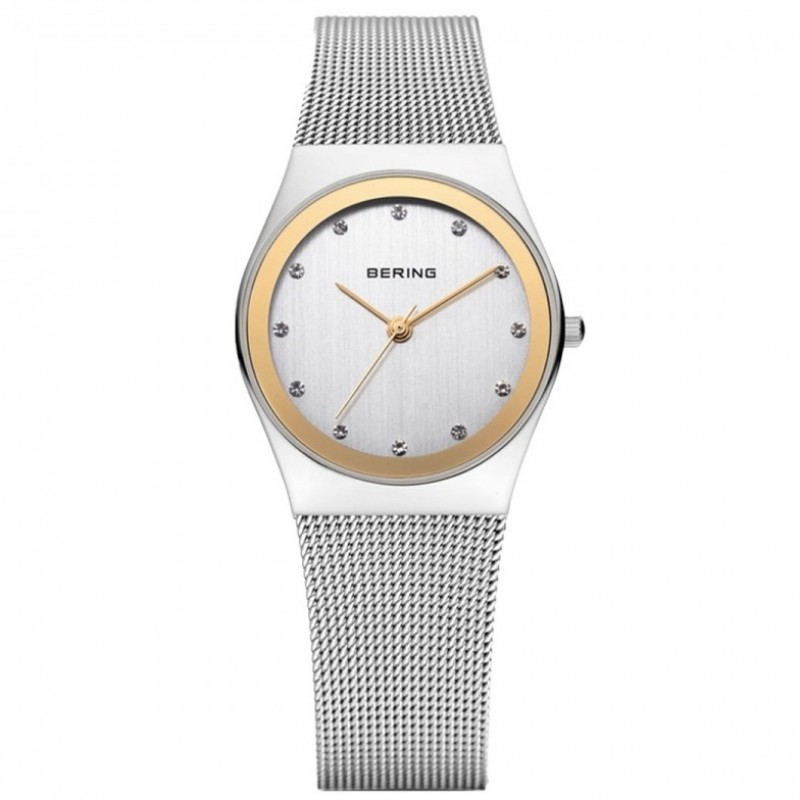 Моделът Bering Classic 12927-010 е олицетворение на датската естетика, която съчетава изчистени линии с изтънчени детайли. Този дамски часовник се отличава със своя елегантен "биколор" дизайн, в който сребристите тонове на благородната стомана се преплитат със златисти акценти, придаващи усещане за висок клас и топлина. Циферблатът е украсен с нежни кристали на мястото на цифрите, които дискретно улавят светлината при всяко движение.