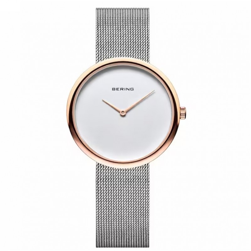 Моделът Bering Classic 14333-064 е съвършено съчетание между датски минимализъм и изискан лукс. Този часовник привлича вниманието със своя изчистен бял циферблат, рамкиран от нежен корпус в цвят розово злато. Дизайнът е вдъхновен от арктическите пейзажи, където чистотата на формите е водеща, а комбинацията от сребриста верижка и розови детайли го превръща в универсално допълнение към всяка визия.
