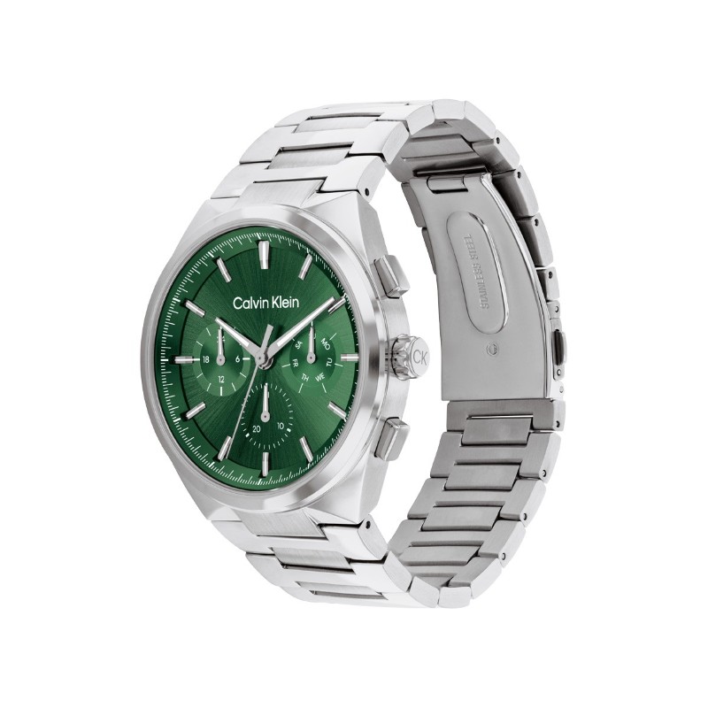 Часовникът Calvin Klein 25200441 Distinguish е съвършено изразяване на елегантност и стил. С впечатляващ зелен циферблат и 44 мм метален корпус, той ще привлича погледите навсякъде, където отидеш. Сивата метална каишка осигурява удобство при носене, докато кварцовият механизъм гарантира точност. На изгодна цена, този часовник от Calvin Klein е не само аксесоар, а и израз на индивидуалността ти. Направи впечатление с този уникален часовник и добави увереност в ежедневието си!