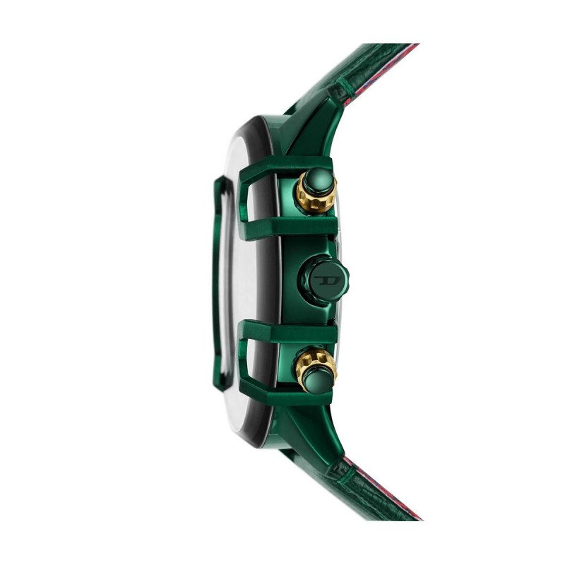 Моделът Diesel DZ4651 от емблематичната серия Griffed е създаден за мъже, които не се страхуват да изразят своята индивидуалност чрез масивни и характерни аксесоари. Този часовник се отличава със своя специфичен корпус, вдъхновен от индустриалните елементи, и уникалната цветова комбинация между зелена каишка от естествена кожа и тъмен циферблат. Дизайнът на корпуса включва характерните за серията "скоби", които обгръщат стъклото, придавайки му изключително динамичен и модерен вид. Избирайки този часовник от Timebox.bg, вие залагате на аксесоар, който доминира на китката и служи като перфектен завършек на всяка градска визия.