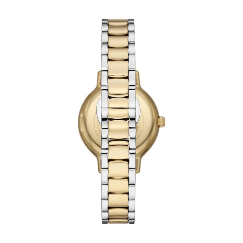 Този дамски часовник Emporio Armani AR11513 от колекцията Cleo е въплъщение на женствената елегантност. Основното му предимство е луксозната двуцветна (bi-color) изработка, която умело съчетава благородна стомана в сребристо и златисто PVD покритие. Това го прави изключително лесен за комбиниране както със златни, така и със сребърни бижута.