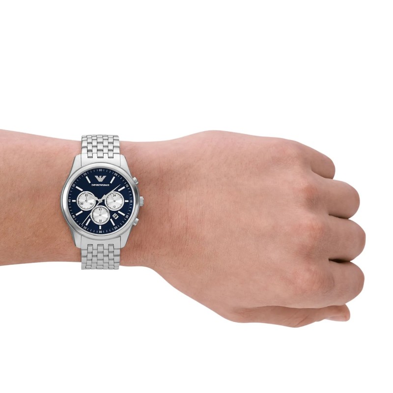 Часовникът Emporio Armani AR11582 Antonio ще ти донесе усещане за увереност и стил. С елегантния си сребрист корпус и каишка, комбинирани с дълбок син циферблат, той ще придаде модерно и изискано излъчване на всяка твоя визия. Кварцовият механизъм гарантира прецизност, докато календарът добавя функционалност към твоя ежедневен стил. Emporio Armani е символ на съвършенство и класа, които можеш да притежаваш на изключително изгодна цена. Потопи се в света на лукса и се наслади на това уникално изживяване!