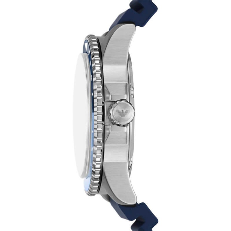 Emporio Armani AR11592 Diver ще ти донесе усещане за динамика и стил, които перфектно се съчетават. Синият циферблат и силиконовата каишка придават спортно излъчване, докато сребристият метален корпус добавя елегантен акцент. Диаметърът на корпуса от 42 мм и кварцовият механизъм гарантират комфорт и прецизност във всеки момент от деня ти. Марката Emporio Armani е синоним на изтънченост и безупречен дизайн, които сега можеш да притежаваш на изключително атрактивна цена. Почувствай как този часовник подчертава твоята индивидуалност и активен начин на живот.