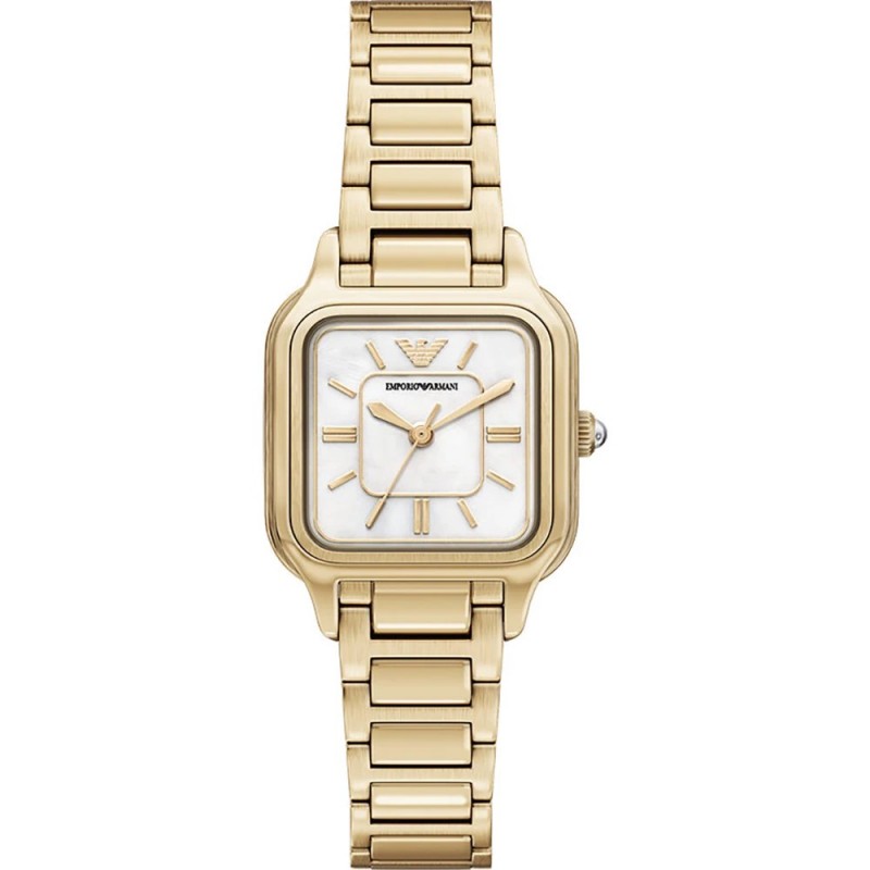 Моделът Emporio Armani AR11744 от престижната колекция Cecilia е истинско бижу, което съчетава класическия лукс с модерна архитектурна форма. Този часовник веднага прави впечатление със своя правоъгълен корпус, който излъчва строгост и същевременно изтънчена женственост. Изцяло златистото покритие придава на модела топъл и престижен блясък, превръщайки го в център на вниманието върху всяка китка. Специално внимание заслужава циферблатът от естествен бял седеф, който благодарение на своята иридисцентна природа променя нюансите си при всяко движение на ръката. Ако търсите аксесоар, който едновременно е точен измервател на времето и луксозно допълнение към Вашия стил, поръчайте този часовник от Timebox.bg.