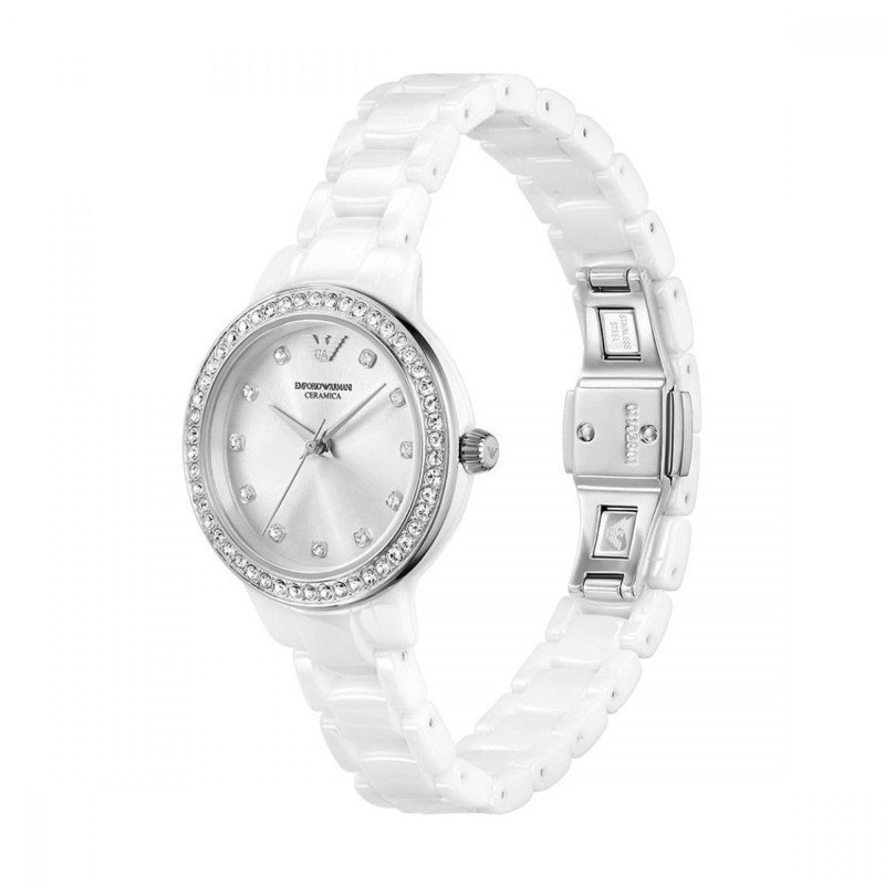 Този великолепен дамски часовник Emporio Armani AR70013 от колекцията Cleo е създаден за дамата, която цени чистите линии и модерната елегантност. Основното предимство на модела е изработката на верижката от бяла керамика. Този високотехнологичен материал е не само изключително красив, но и притежава редица предимства: той е устойчив на надраскване, запазва блясъка си години наред, хипоалергенен е и е учудващо лек, което осигурява несравним комфорт при носене.