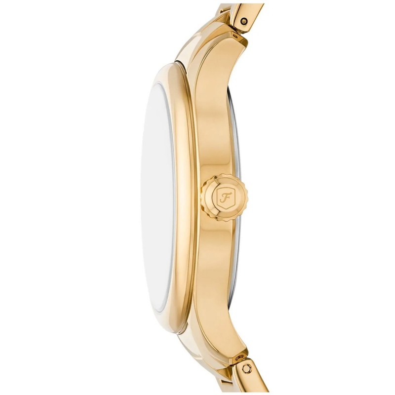 Дамският Fossil ES5395 Gilmore е въплъщение на класическата елегантност, пречупена през модерния дизайнерски поглед на марката. Този часовник се отличава със своя изчистен, правоъгълен корпус, който напомня за ретро естетиката на "tank" моделите, но със съвременно излъчване в златисто. Специфичното предимство на модела е неговият слънчев (sunray) циферблат в цвят шампанско, който улавя светлината по неповторим начин. Тънкият профил и фината метална верижка го правят изключително удобен за носене, превръщайки го в нежно бижу за китката на всяка дама.