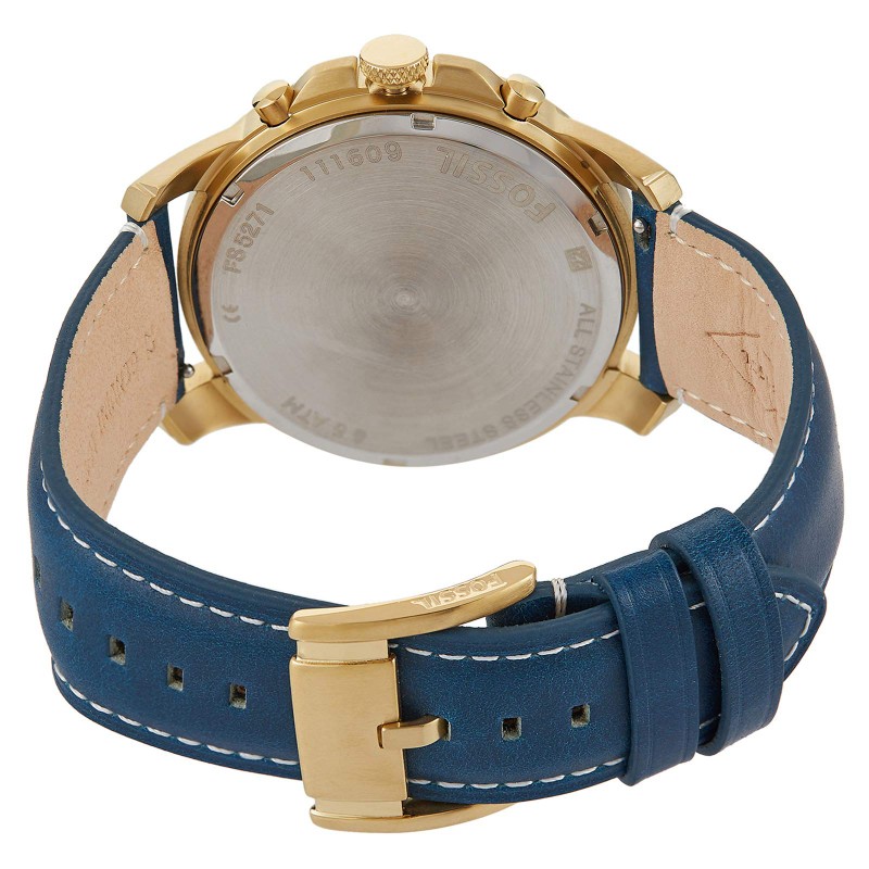 Часовникът Fossil FS5271 Grant е перфектният избор за мъжете, които искат да подчертаят своята индивидуалност и уникален стил. Със своя златист корпус от неръждаема стомана и бежов циферблат с римски цифри, този часовник придава елегантност и лукс на всяко облекло. Синята кожена каишка, изработена от естествена телешка кожа, добавя съвременен акцент и изключителен комфорт при носене.