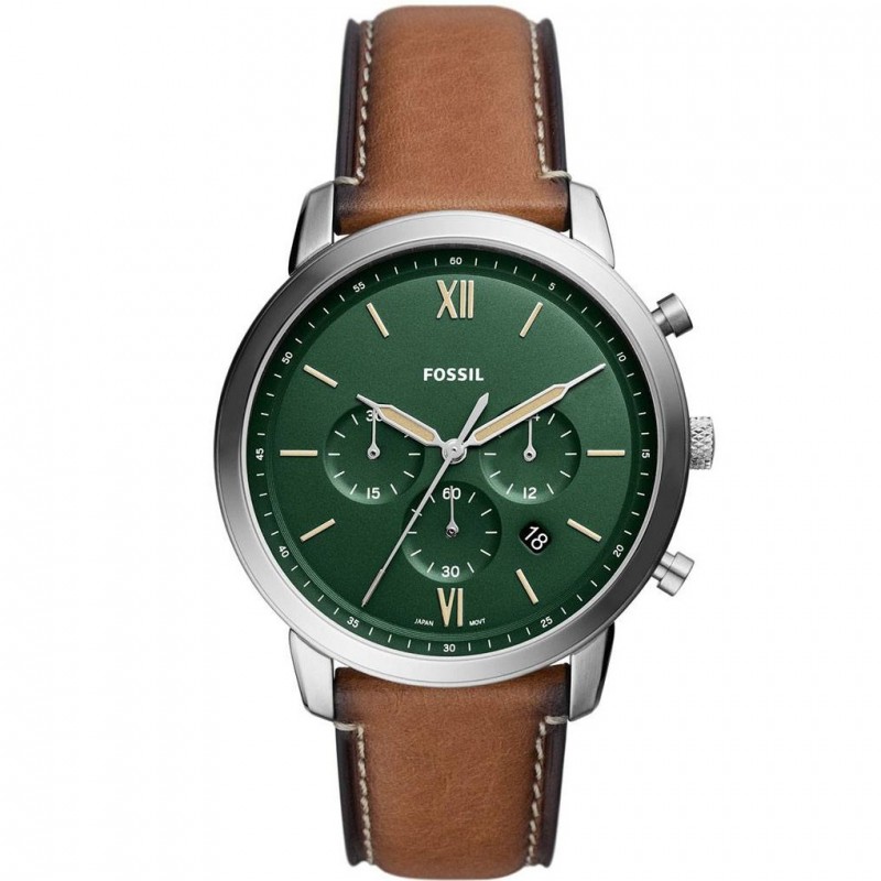 Моделът Fossil FS5963 от колекцията Neutra Chronograph е истинско произведение на изкуството, което съчетава архитектурното наследство от средата на ХХ век с модерната функционалност. Този мъжки часовник впечатлява с неговия зелен матиран циферблат, който създава уникален визуален контраст със сребристия корпус от неръждаема стомана. Диаметърът от 44мм го прави идеален за съвременния мъж, който търси баланс между елегантност и спортен характер.