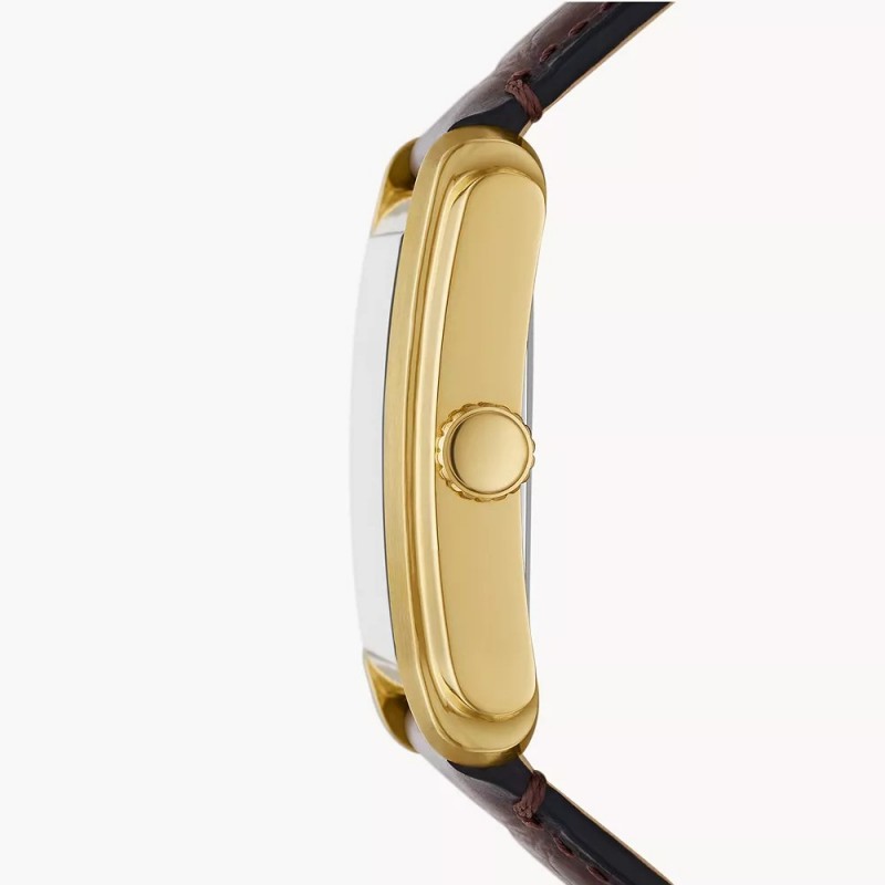 Fossil FS6011 Carraway е истински шедьовър на часовникарското изкуство, който съчетава вечната класика с модерната утонченост. Този изключителен мъжки часовник от колекцията Carraway ще спечели сърцето ви с неговия правоъгълен 30мм корпус от неръждаема стомана със златисто IP покритие и уникалния двуслоен сребрист циферблат. Извитата форма на корпуса е специално проектирана да се прилепва перфектно към китката, осигурявайки максимален комфорт през целия ден.