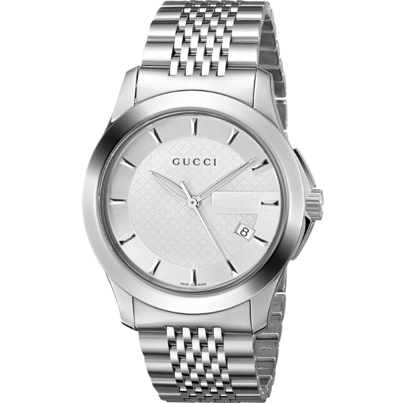 Gucci YA126401 G Timeless е символ на изискан вкус и неподвластен на времето стил. Със своя изчистен бял циферблат и сребриста метална каишка, този часовник е създаден за мъже, които ценят класата и детайлите. Кварцовият механизъм осигурява висока прецизност, а компактният 38 мм корпус гарантира удобство при носене.
