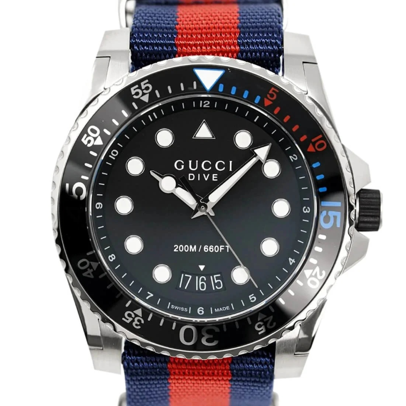 Gucci YA136210 Dive е мъжки часовник с висока водоустойчивост от 20 ATM, което го прави идеален за гмуркане.