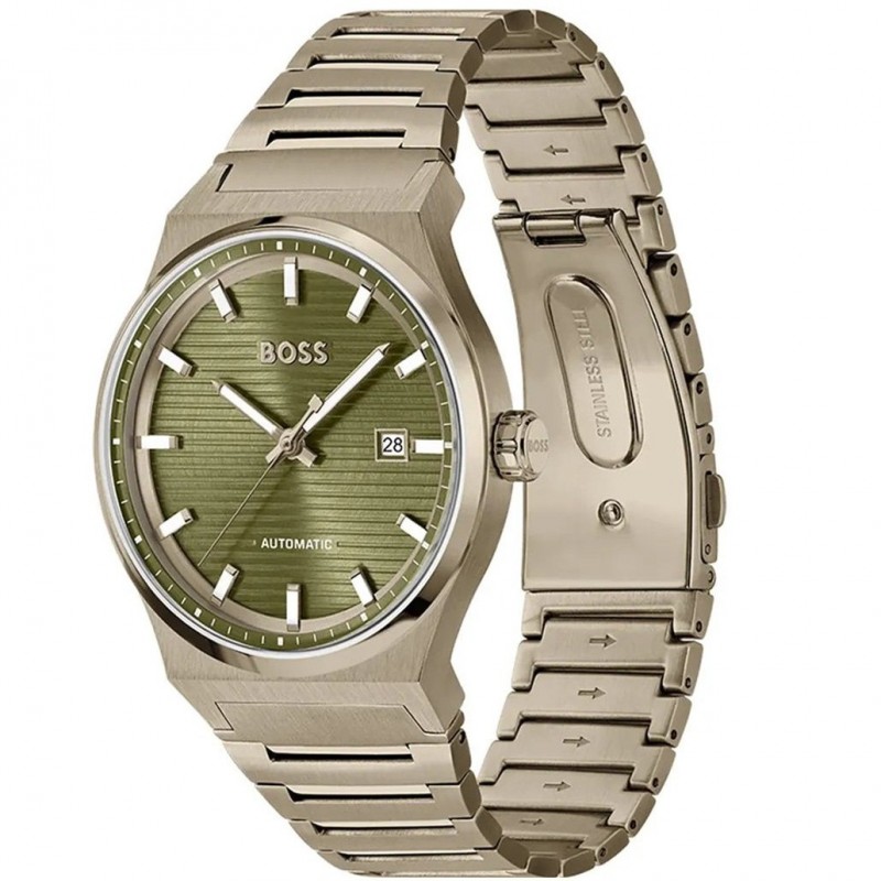 Hugo Boss Candor Auto 1514184 възражда духа на класическите часовници от 1970-те години с модерен подход към автоматичното часовникарство. Този изискан модел се отличава със своя уникален зелен циферблат и минималистичен дизайн, който излъчва изтънченост и стил. Автоматичният Miyota механизъм с Boss фирмен ротор може да бъде наблюдаван през прозрачния гръб на часовника, правейки го истинска наслада за ценителите на часовникарското изкуство. С 41 мм диаметър и интегрирана стоманена каишка, този часовник от Timebox.bg е перфектният избор за мъжа, който търси автентичност и изтънченост.