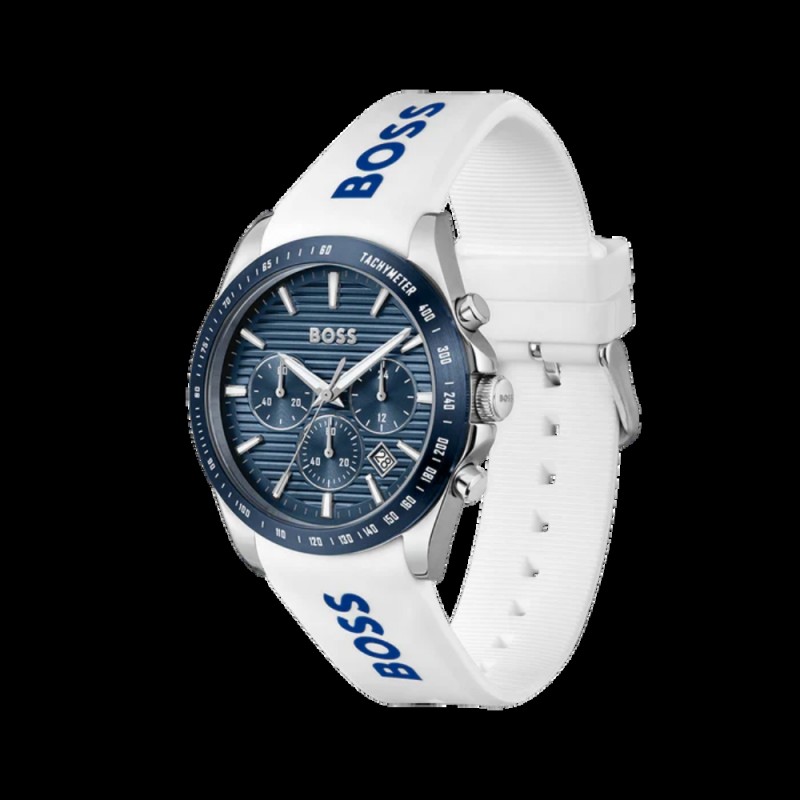 Hugo Boss 1514238 Strike Chronograph е създаден специално за активните мъже, които търсят перфектната комбинация между спортен дизайн и елегантност. Този часовник впечатлява с текстуриран син циферблат и контрастна бяла силиконова верига с BOSS лого. Оборудван с хронограф функция и тахиметър, той е идеалният аксесоар за лятото и активния начин на живот. При поръчка от Timebox.bg получавате гаранция за автентичност и качествено обслужване.
