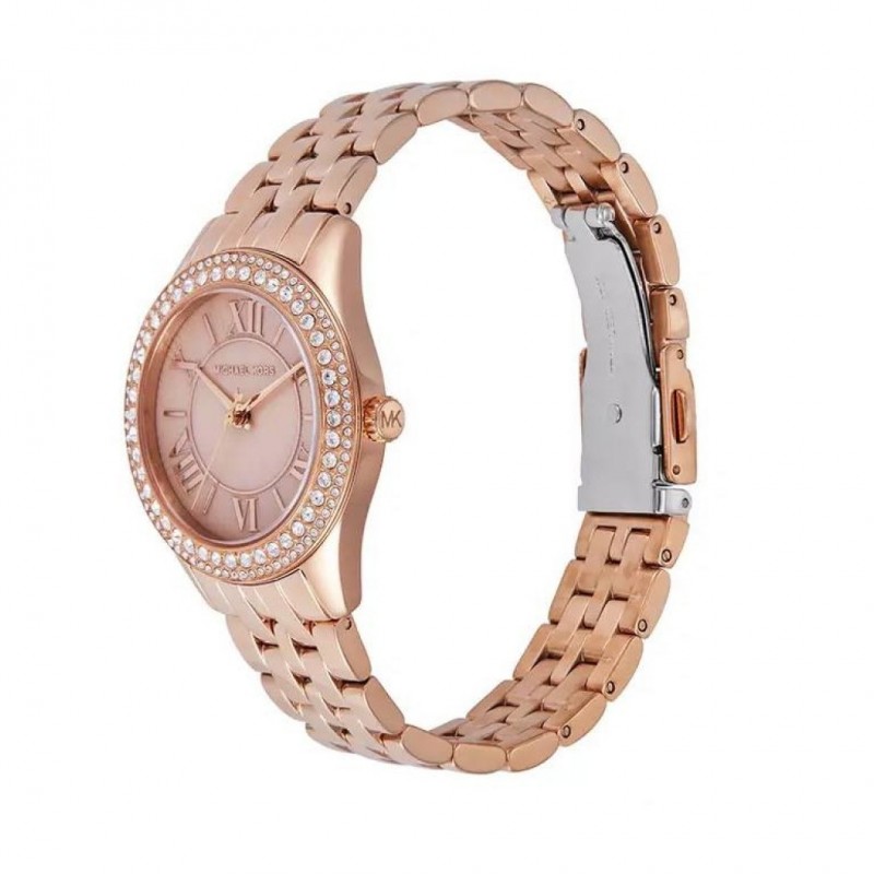 Часовникът Michael Kors Mini Harlowe MK4845 е истинско въплощение на женската елегантност и съвременния стил. Този изключителен часовник от популярната колекция Harlowe се отличава с покритие в розово златисто и блестящи кристални акценти, които правят всеки момент специален. Компактният му размер от 33мм го прави идеален за делничните дни и официални поводи, докато луксозният дизайн добавя нотка на гламур към всяка визия.
