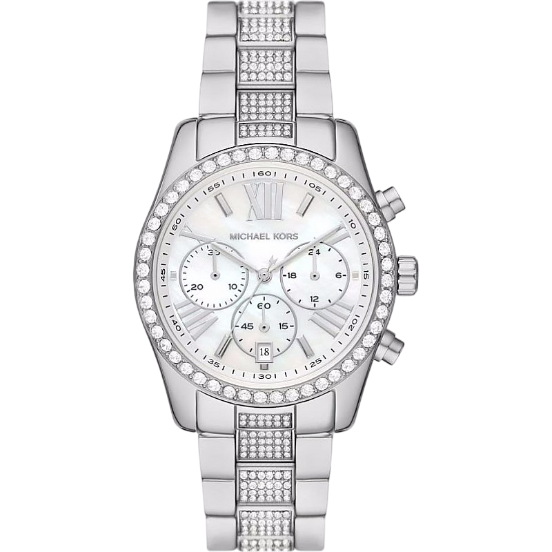 Michael Kors MK7243 Lexington е въплъщение на изтънчения стил и функционалност. Този часовник се отличава с хронографски функции и перламутрен циферблат, който блести с различни нюанси при промяна на ъгъла на светлината. Павираните кристали по ободката и централната част на гривната създават луксозен ефект, а сребристото покритие от неръждаема стомана осигурява елегантност и дълготрайност. С диаметър 38мм, този модел предлага перфектен баланс между женствеността и практичността. Хронографът позволява измерване на интервали от време - функция, която прави часовника подходящ както за ежедневието, така и за специални поводи. Сгъваемата закопчалка гарантира сигурност и комфорт при носене, а водоустойчивостта от 10 АТМ позволява използване при различни дейности.
