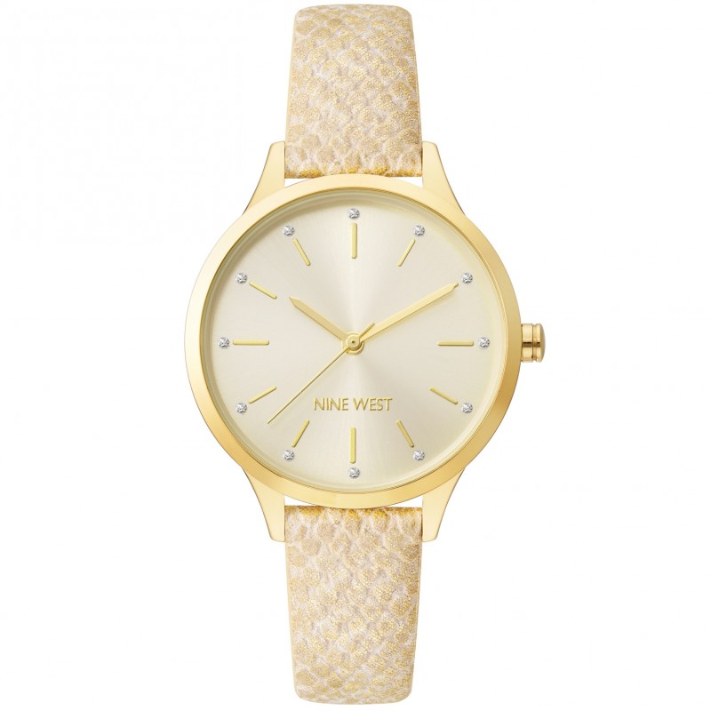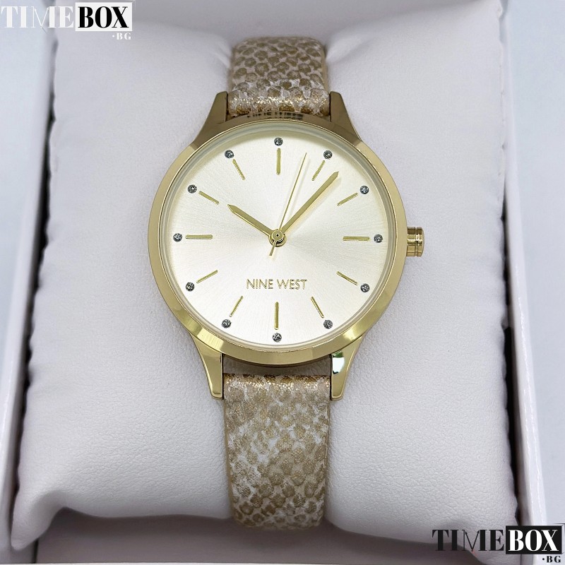 Открийте перфектния аксесоар за всяка дама с този изящен часовник от Nine West. Моделът NW/2558CHGD е олицетворение на класическа елегантност и модерен стил. Той съчетава златист метален корпус с изискана бежова каишка от изкуствена кожа, която осигурява комфорт и стил. Циферблатът с перлен оттенък, украсен с кристали, добавя нотка блясък и лукс, превръщайки часовника в идеалния завършек на всяка визия. Този модел е подходящ за подарък, който ще бъде оценен от всяка жена, ценяща стила и изтънчеността.