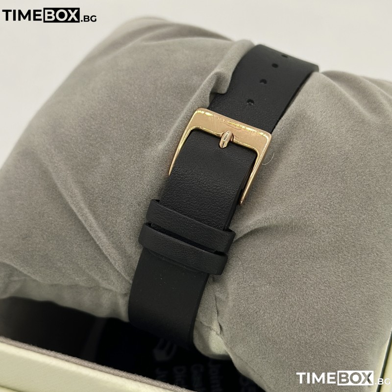 - Каишка: Изработена от висококачествена естествена кожа в черен цвят с ширина 16 мм. Кожата е мека и се адаптира идеално към формата на китката.