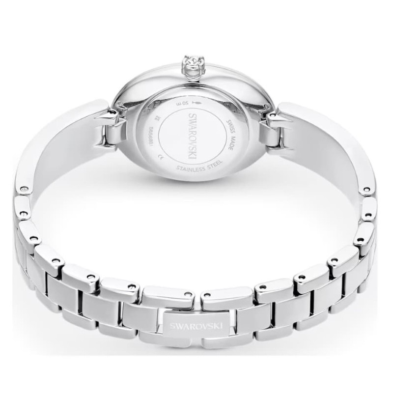 - Циферблат: Сив (тип "слънчев лъч") с логото на Swarovski на 12 часа. Сребърни стрелки и индекси.