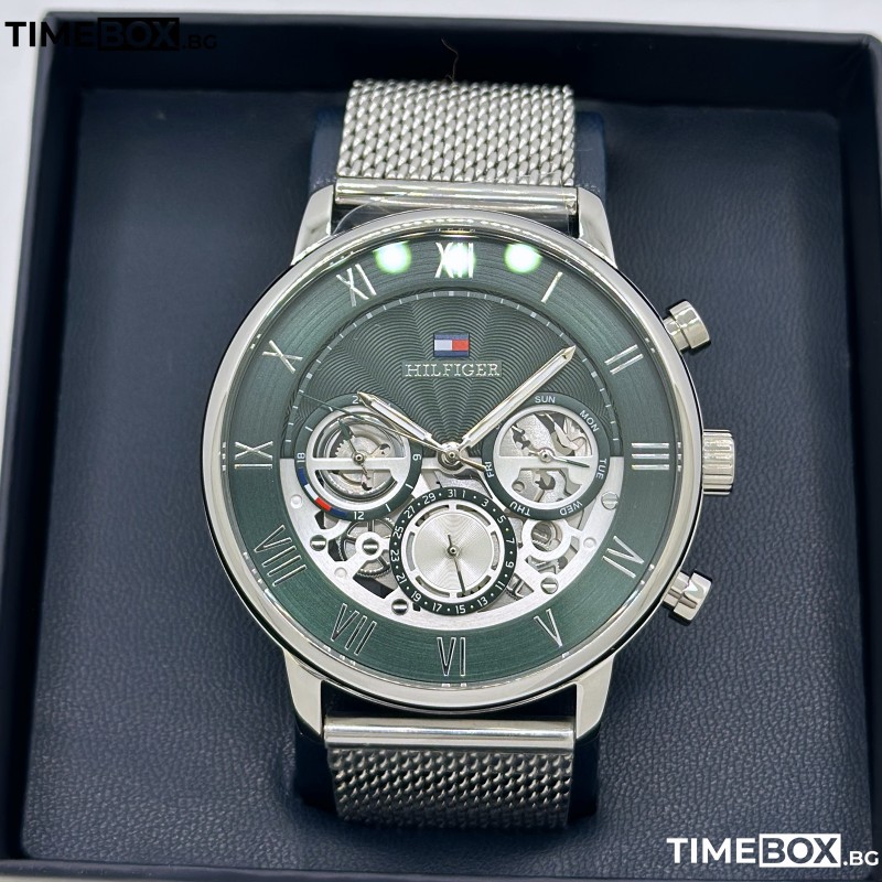 Мъжкият часовник Tommy Hilfiger 1710567 Legend е истинско бижу за стилни мъже, които ценят елегантността. Със своята сива метална верижка и наситен зелен циферблат, той добавя уникалност и модерен акцент на всяка ваша визия.